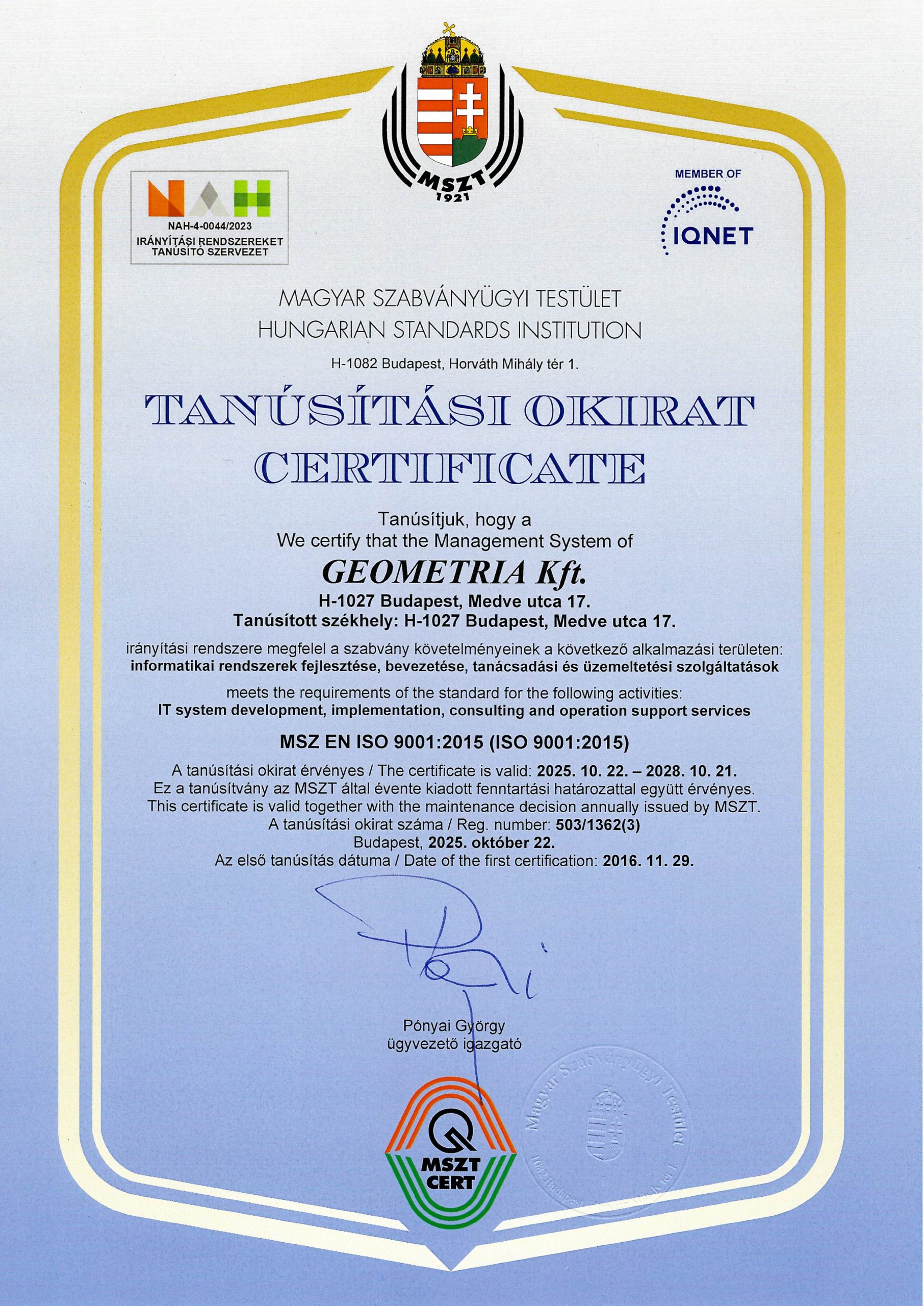 • ISO tanúsítványok